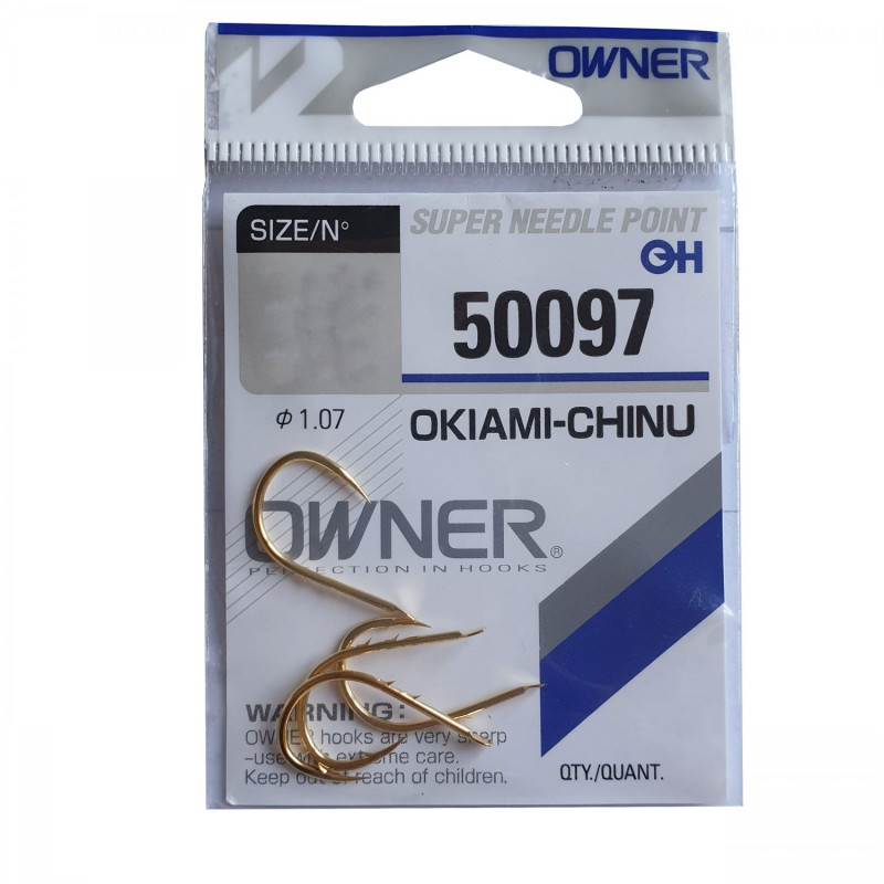 Carligele Owner din gama 50097 OKIAMI-CHINU sunt fabricate din sarma puternica, forjate,cu legatura pe paleta, formatul rotund si tija de lungime medie spre lunga. Au doi spini pe paleta exterioara a tijei ce fixeaza si mentine bine momelile vii -rame,lipitori, broscute, etc. Datorita culorii Gold-Auriu sunt preferatele pescarilor de rapitor ce frecventeaza des Oltul, Muresul, Dunarea si Delta Dunarii. Aceste carlige va scuteste de neplacerile provocate de pierderea momelii vii si necesitatea schimbarii lor foarte des. Dau in permanenta rezultatele foarte bune la somn, salau,stiuca si biban.