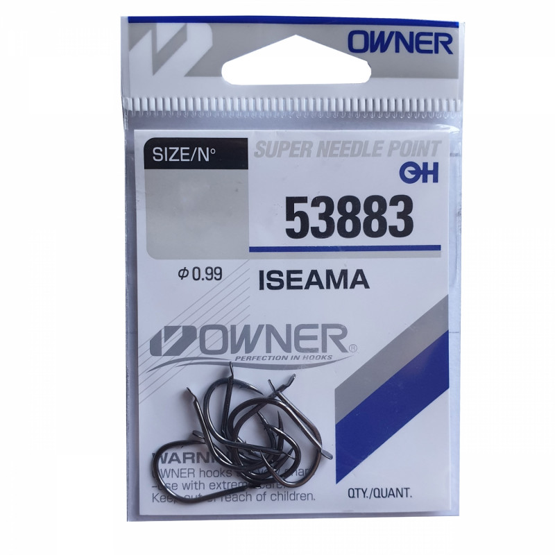 Carligele Owner din gama 53883 ISEAMA respecta caracteristicile de baza ale gamei Iseama -tije medie spre scurta ca lungime, varful de intepare usor alungit, sarma de otel HI-CARBON tratat electrochimic anticoroziune, legatura pe paleta si curbura usor patrata. Datorita culorii Black Chrome, sunt carlige utilizate in mare parte de catre pescarii de crap, somn, platica mare, fie ca utilizeaza ca momeala porumbul, mamaliga, peletele, fie ca utilizeaza momelii vii cum ar fii rame, viermii, etc. Pescarii de lac si balta le prefera pe monturi ce nu necesita nodul fara nod, sau firul de par. Sunt preferate in special de catre cei care pescuiesc cu wafters.