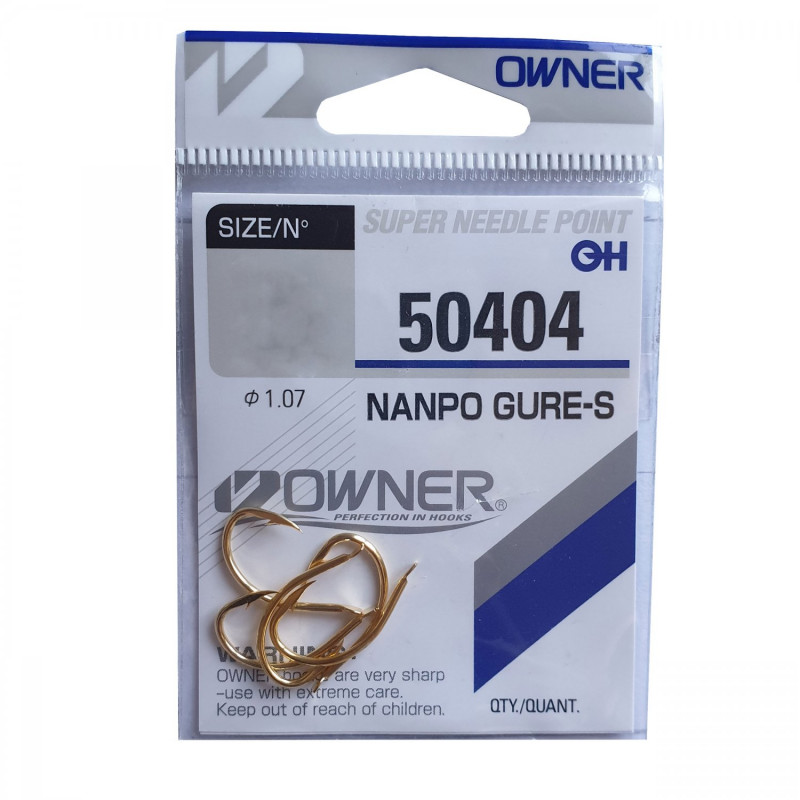 Carligele Owner din gama 50404 NAPO GURE sunt caracterizate de tija scurta, formatul rotunjit, si varful de intepare alungit. Legatura pe paleta si culoarea Gold - Auriu il recomanda pescarilor de rau si in general ape cu curgere lenta. Succesul acestui carlig il explica plaja mare de pesti tinta vizati : crap, caras, platica, morunas, scobar, etc. Se poate folosi cu momeli de genul : porumb, pelete, mamaliga, barila, etc.